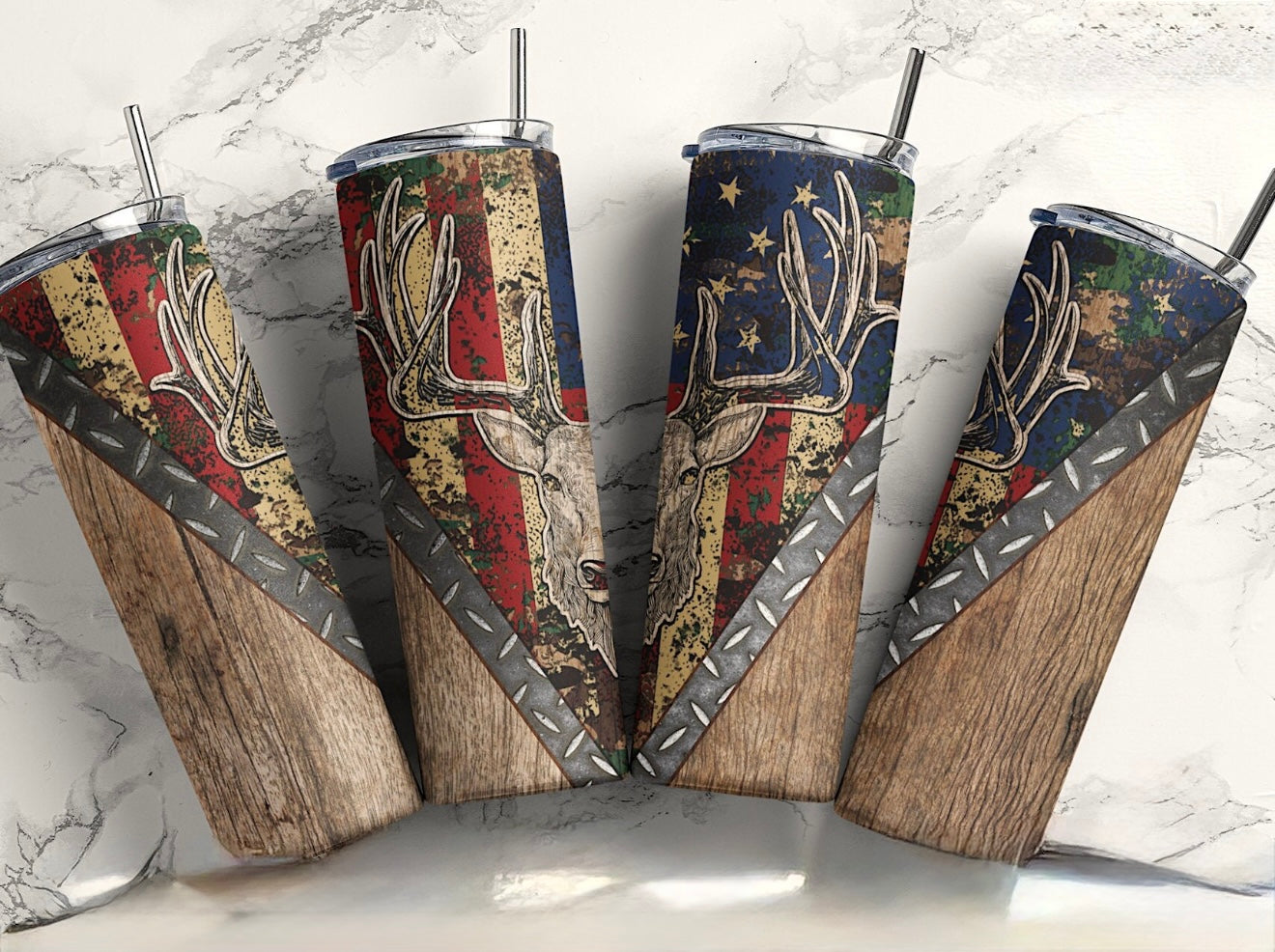 "Get ready to take on the great outdoors with our Deer Hunting USA Flag tumbler! Featuring a bold 20oz design and patriotic American flag, this tumbler is perfect for any adventure. Stay hydrated while hunting with style and show off your love for the sport and country all in one!"